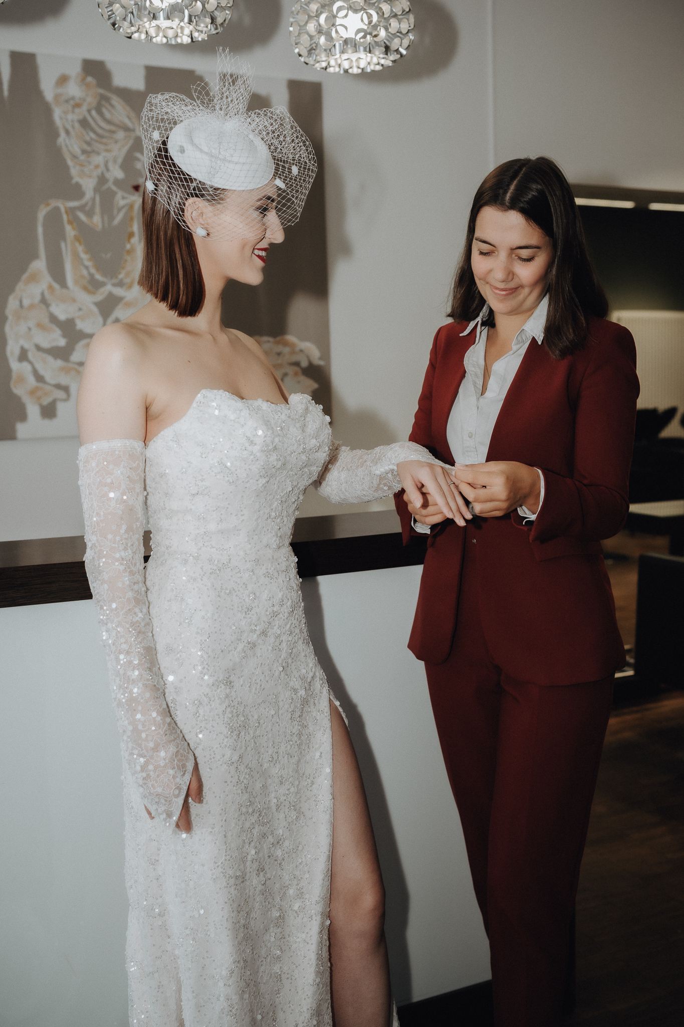 Der Tag beginnt ruhig. Sanftes Licht fällt auf feine Stoffe, zarte Blumen und liebevoll arrangierte Details. Inmitten von Lachen, Aufregung und leisen Momenten entsteht eine besondere Stimmung – voller Vorfreude, Leichtigkeit und Liebe.