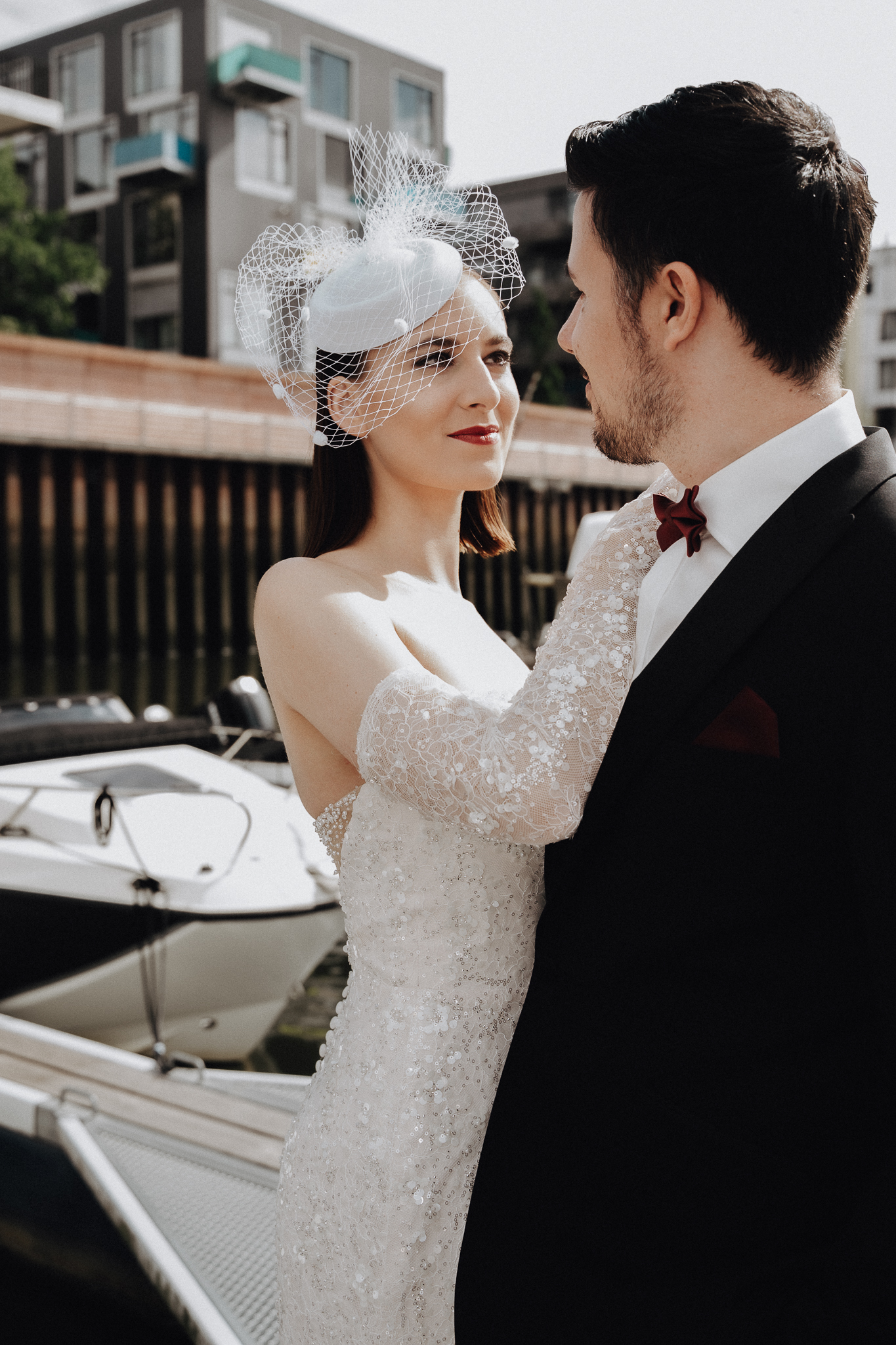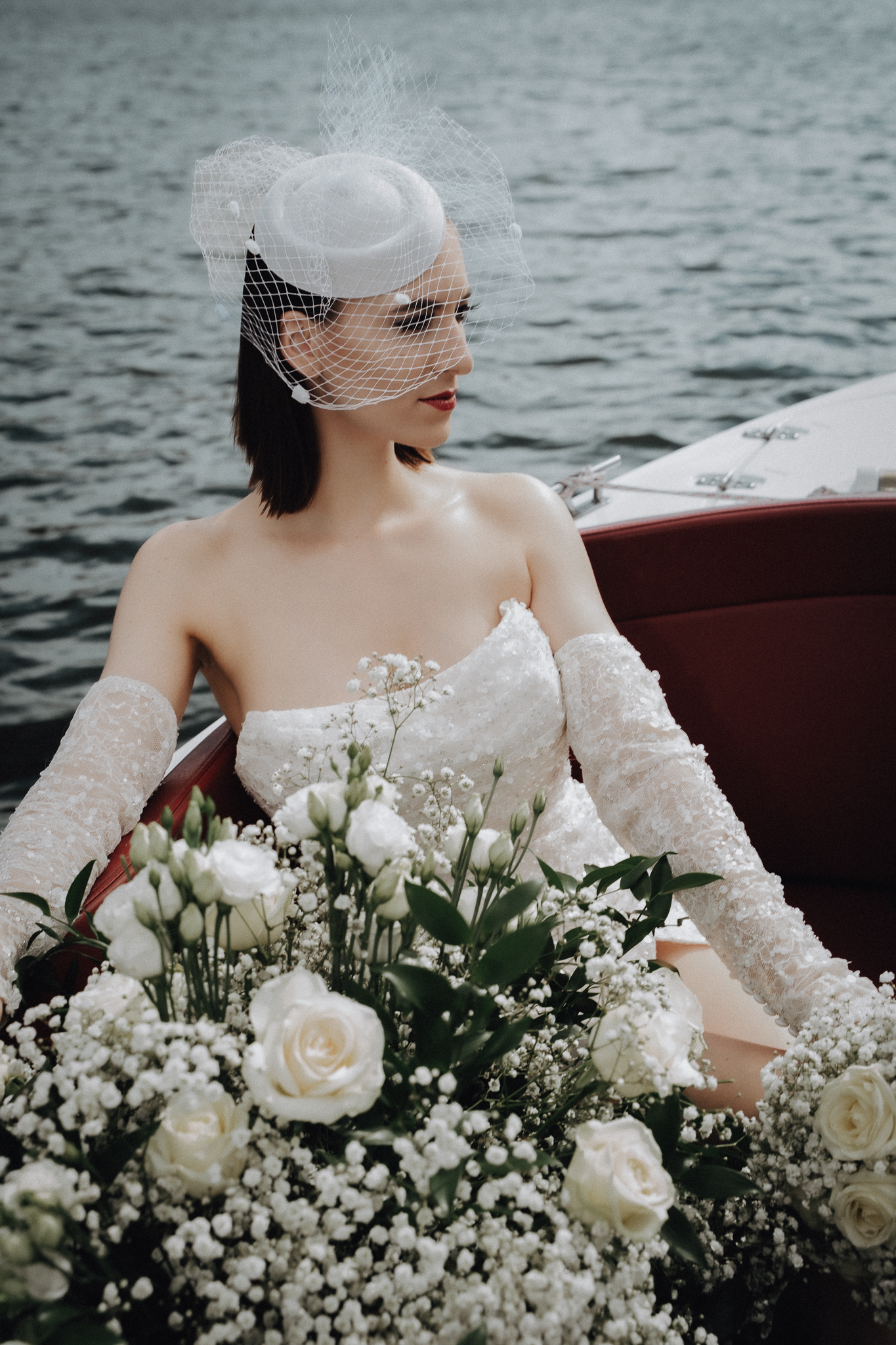 Während das Kleid seinen Platz findet, Accessoires angelegt und letzte Handgriffe getan werden, liegt bereits Magie in der Luft. Draußen wartet das Boot – elegant geschmückt, bereit für den großen Moment.