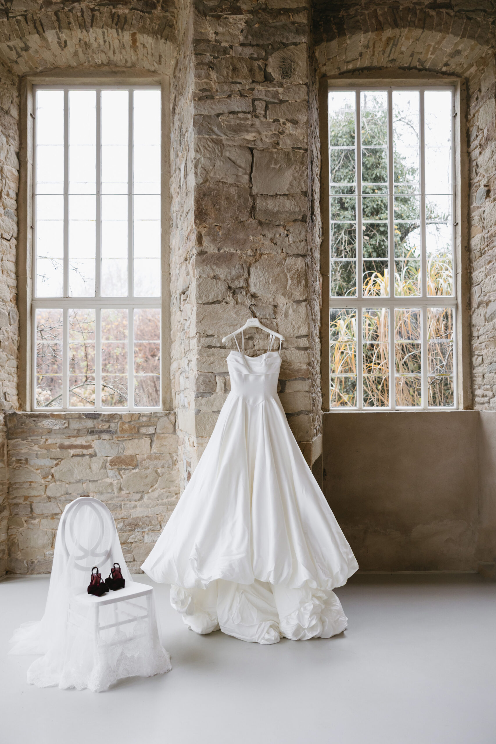 Ein Ort voller Geschichte, Licht und Eleganz: Die stilvolle Orangerie auf dem Gut Ostenwalde wird zum besonderen Rückzugsort für das Getting Ready. Zwischen den hohen Fenstern, die den Raum in natürliches, weiches Licht tauchen, und den hellen, historischen Architekturdetails entsteht ein Setting, das Ruhe, Klasse und zeitlose Schönheit vereint.